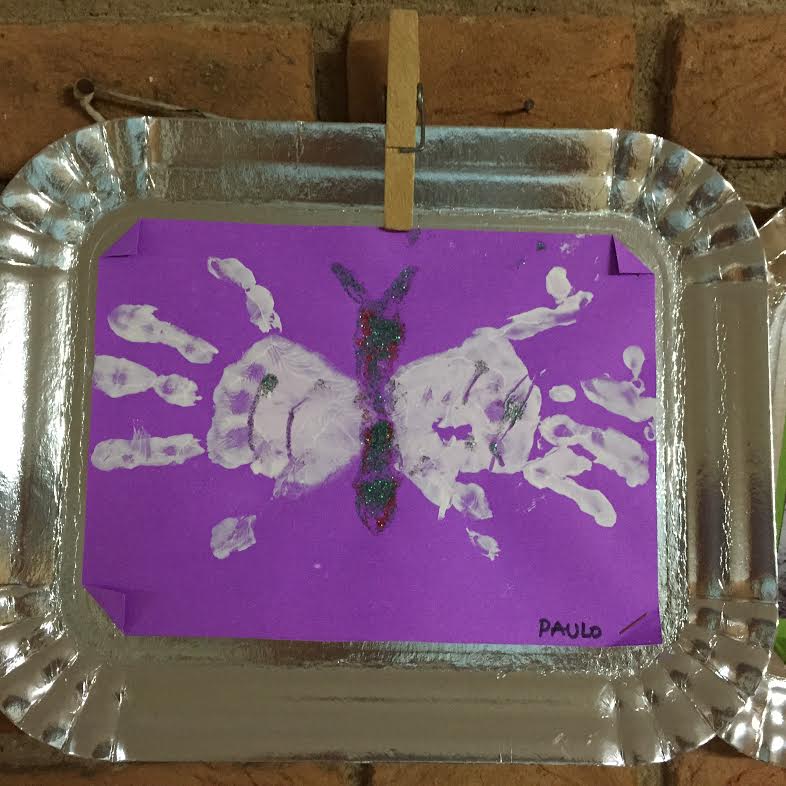 bandejinha que enviamos, utilizando recortes, desenhos, pinturas, botões e
